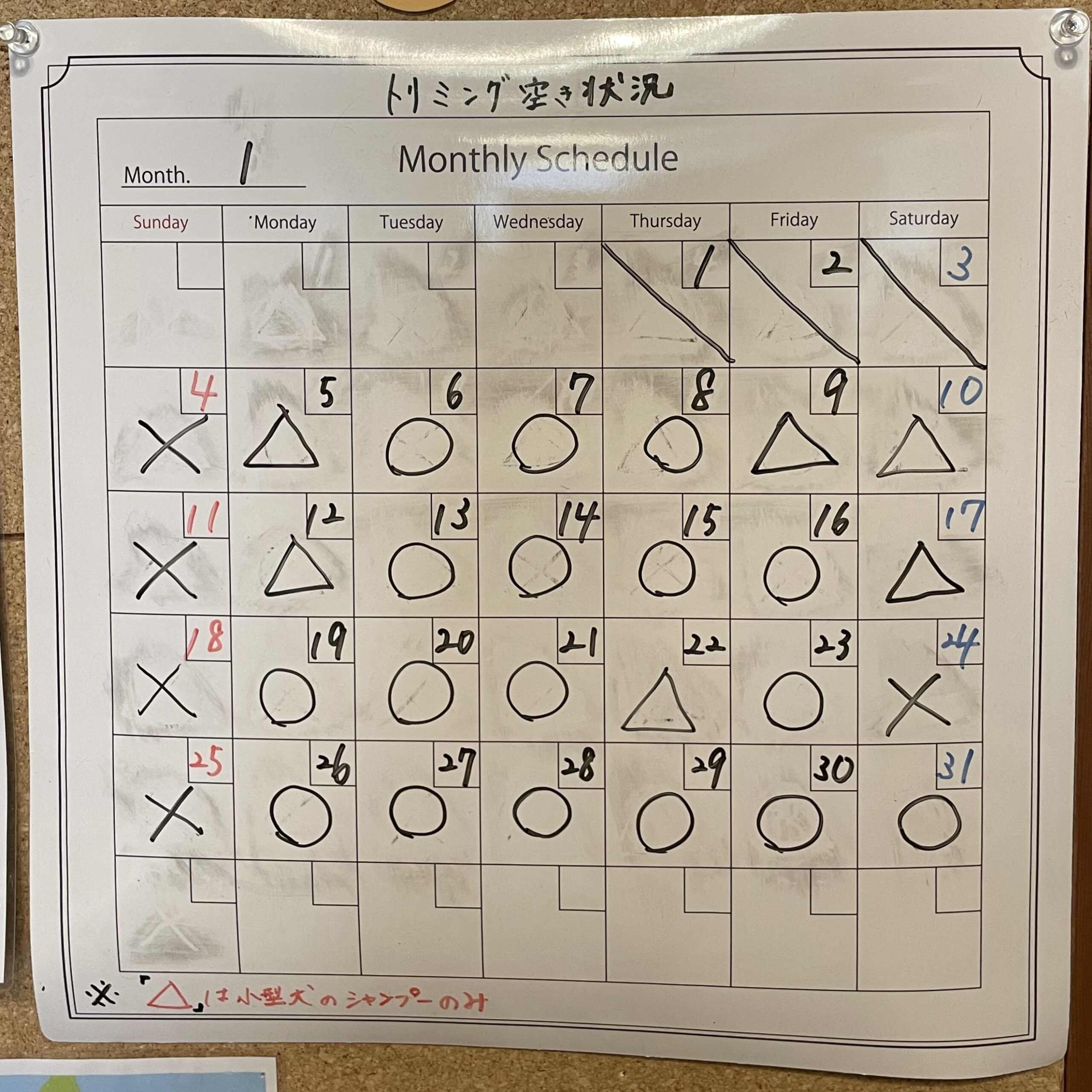 トリミング〈1月の空き状況〉