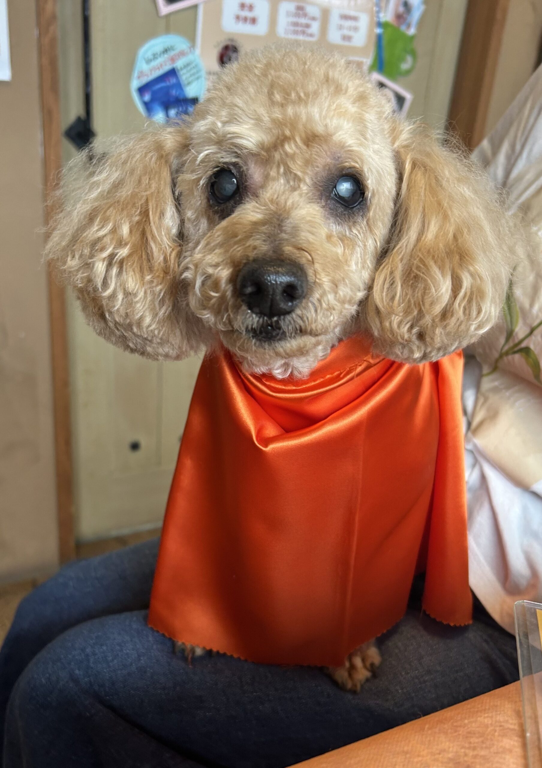 朱色のドレープがお似合いで、毛艶もよく見えますね✨